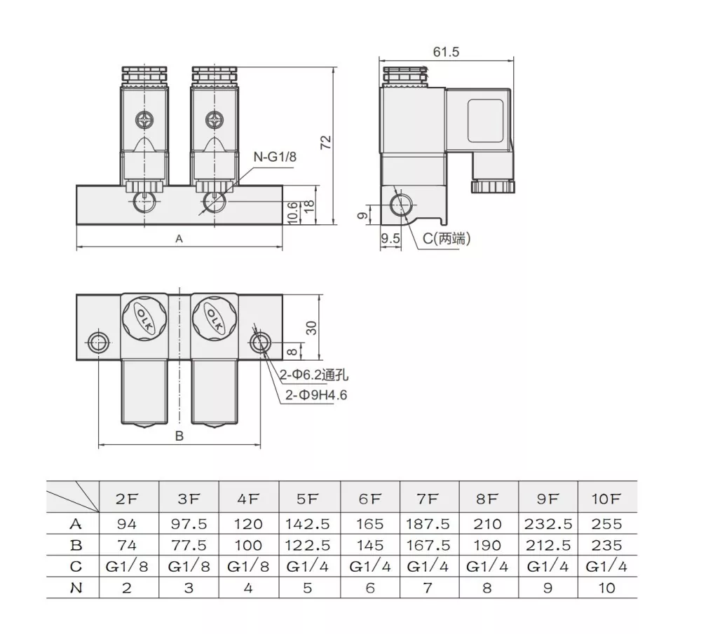 2V025 सोलेनॉइड वाल्व मैनिफोल्ड सामान्य पैरामीटर डेटा:
