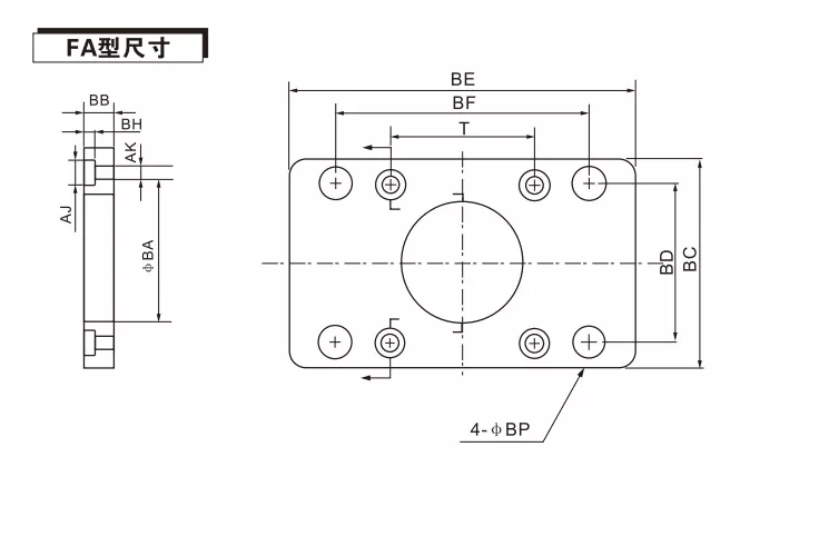 एफए फ्रंट निकला हुआ किनारा: सिलेंडर के सामने के छोर को उपकरण से कनेक्ट करें, स्थापना के दौरान बाहर की ओर पिस्टन रॉड के साथ। आमतौर पर उपकरण फ्रंट-एंड और लोड पुश परिदृश्यों में उपयोग किया जाता है।