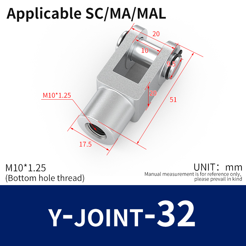 वायवीय 32 मिमी बोर 25 मिमी स्ट्रोक एयर सिलेंडर डबल एक्शन वाई कनेक्टर और 2 पीसी 6 मिमी पीसी फिटिंग MAL32x25 के साथ