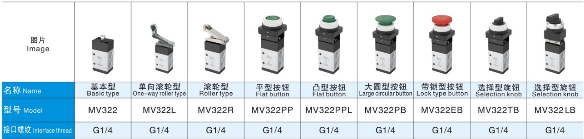 MV522 मैकेनिकल वाल्व 2 पोजीशन 5 वे है; MV322 मैकेनिकल वाल्व 2 पोजीशन 3 वे है।