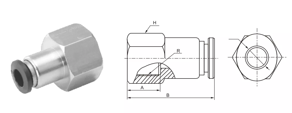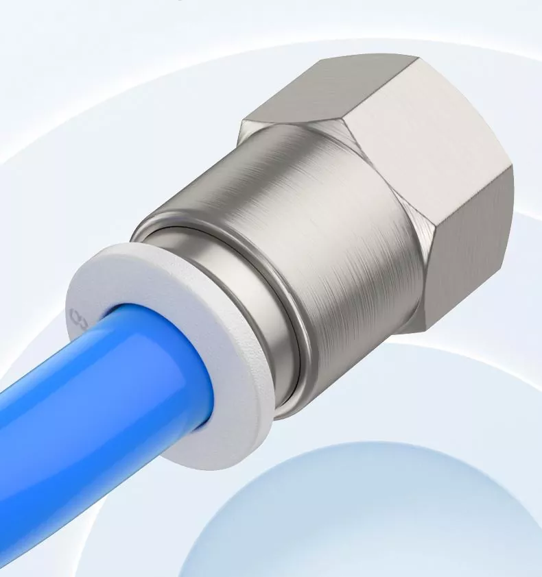 ट्यूब फिटिंग में पीसीएफ महिला स्ट्रेट पुश और ट्यूब फिटिंग में पीसी पुरुष थ्रेड स्ट्रेट पुश सभी बेसिक टाइप पुश-इन-फिटिंग से संबंधित हैं। लेकिन पीसीएफ महिला आर थ्रेड स्ट्रेट है। इनटर्नल थ्रेड का उपयोग बाहरी थ्रेडेड घटकों को कनेक्ट करने के लिए किया जाता है, और सम्मिलन ट्यूब एंड एक नली से जुड़ा होता है। अधिक कॉम्पैक्ट रूप से स्थापित किया गया