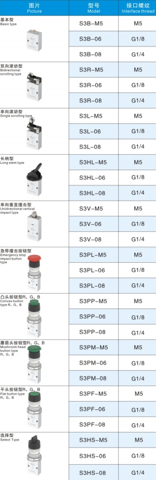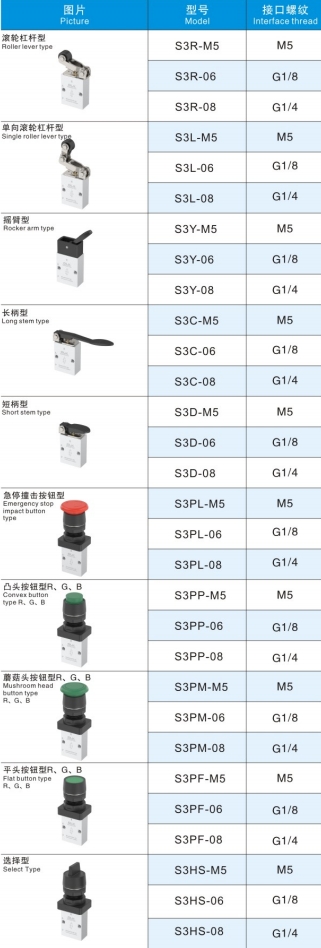 2. S3PF, S3PM, S3PP, S3PL, S3Y, S3HS, S3C, S3D श्रृंखला मैन्युअल रूप से संचालित होती है, जिसमें विभिन्न परिस्थितियों में सुविधाजनक उपयोग के लिए नियंत्रण प्रमुखों के विभिन्न संरचनात्मक आकार होते हैं।