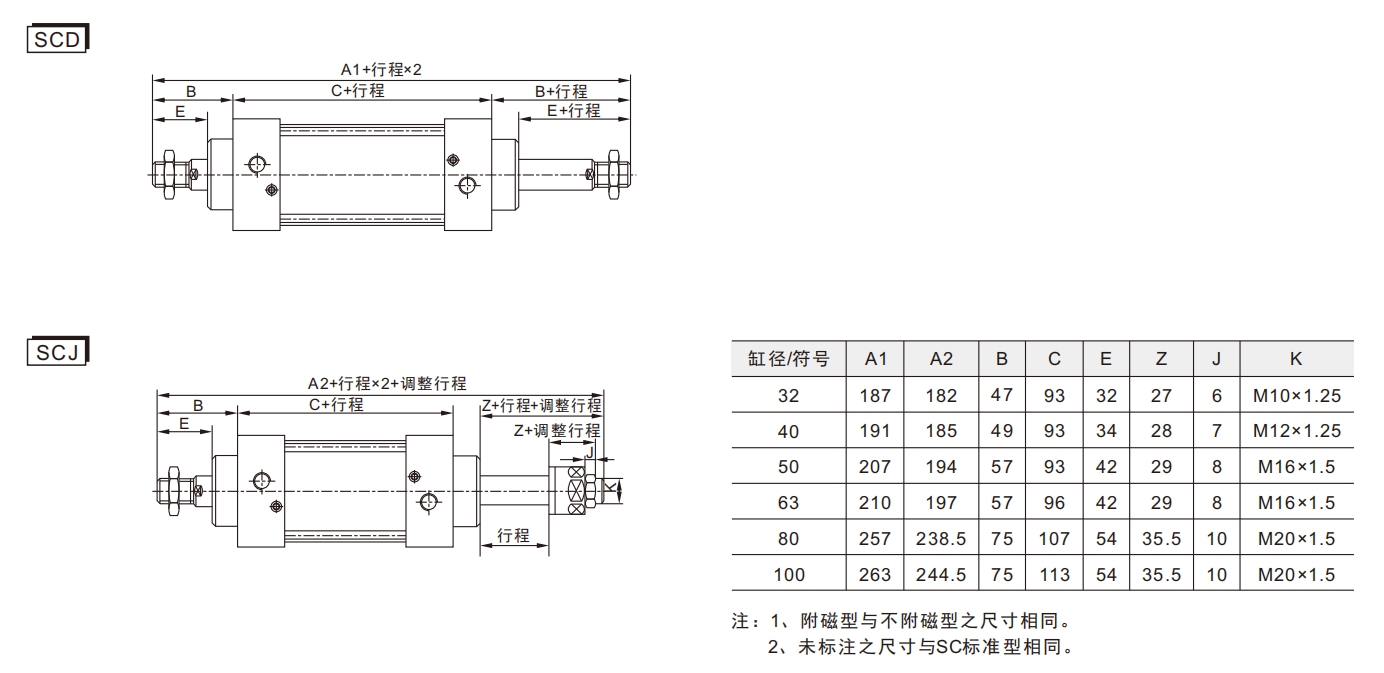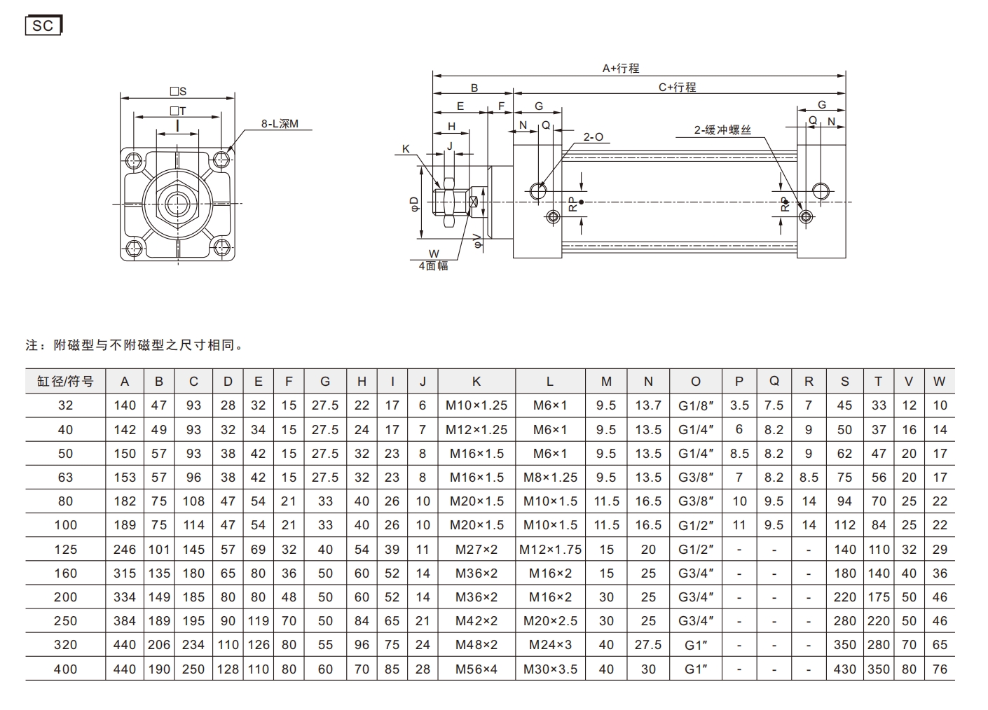 4। IS015552 मानक सिलेंडर के साथ तुलना में, SC श्रृंखला सिलेंडर में एक ही सिलेंडर व्यास के लिए छोटी लंबाई होती है।