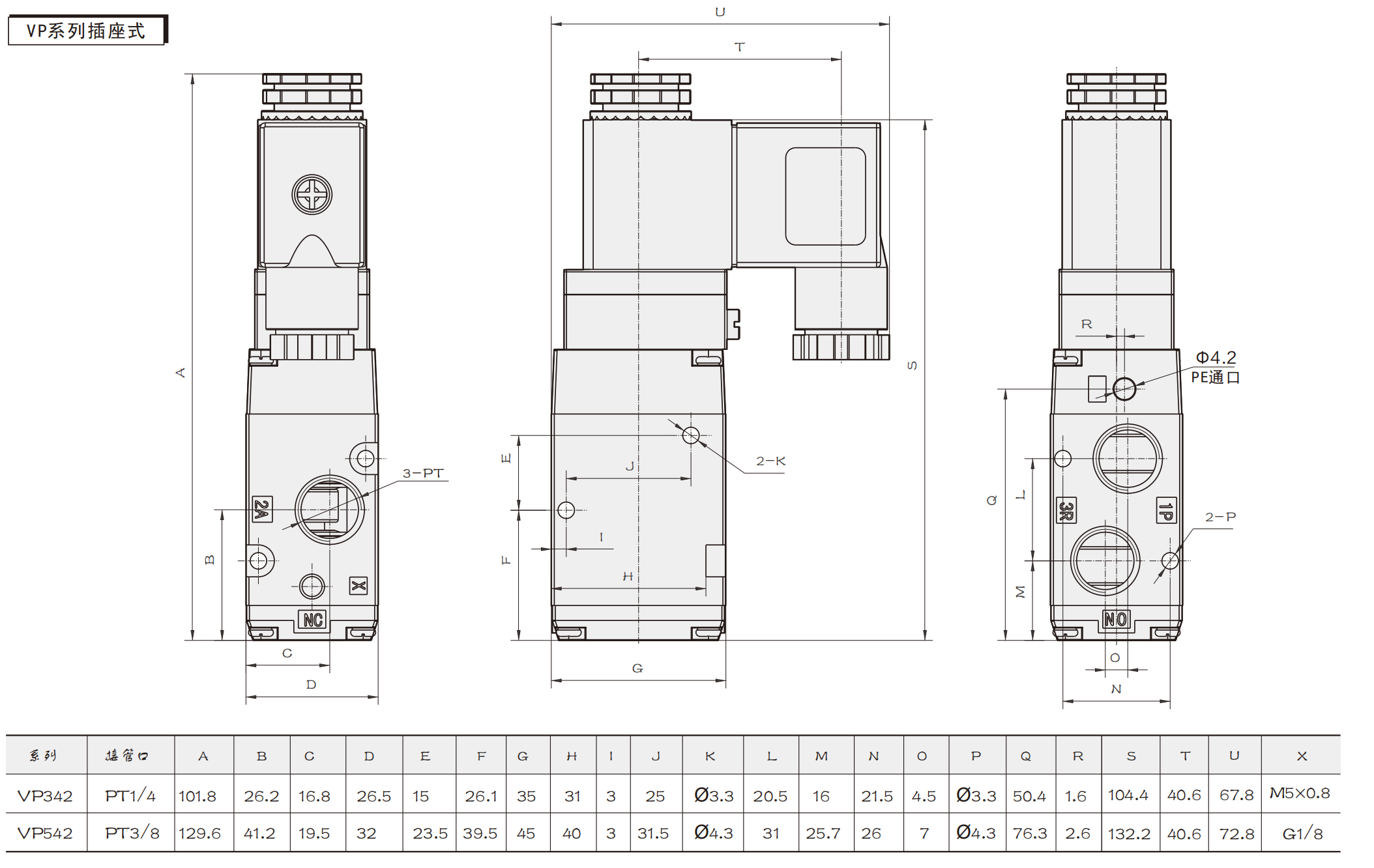 वीपी श्रृंखला सोलनॉइड वाल्व 3 वे सीई प्रमाणपत्र सामान्य पैरामीटर