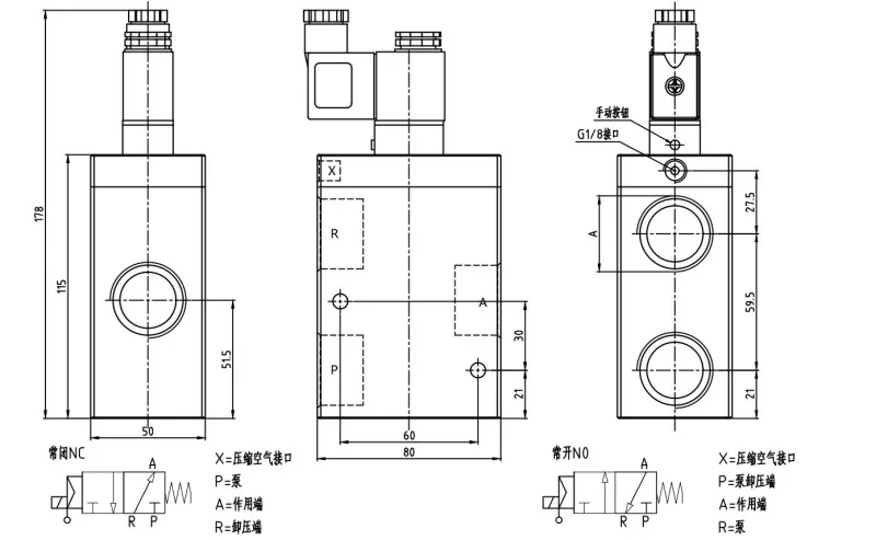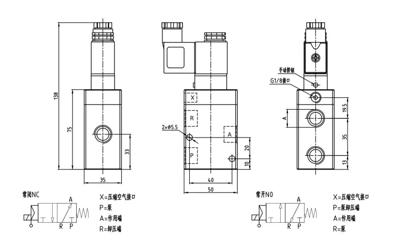 VU07 वैक्यूम सोलनॉइड वाल्व 3 वे प्रतीक