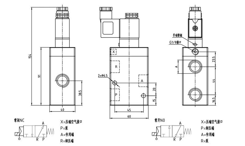 सभी संपीड़ित वायु पोर्ट G1/8 हैं।